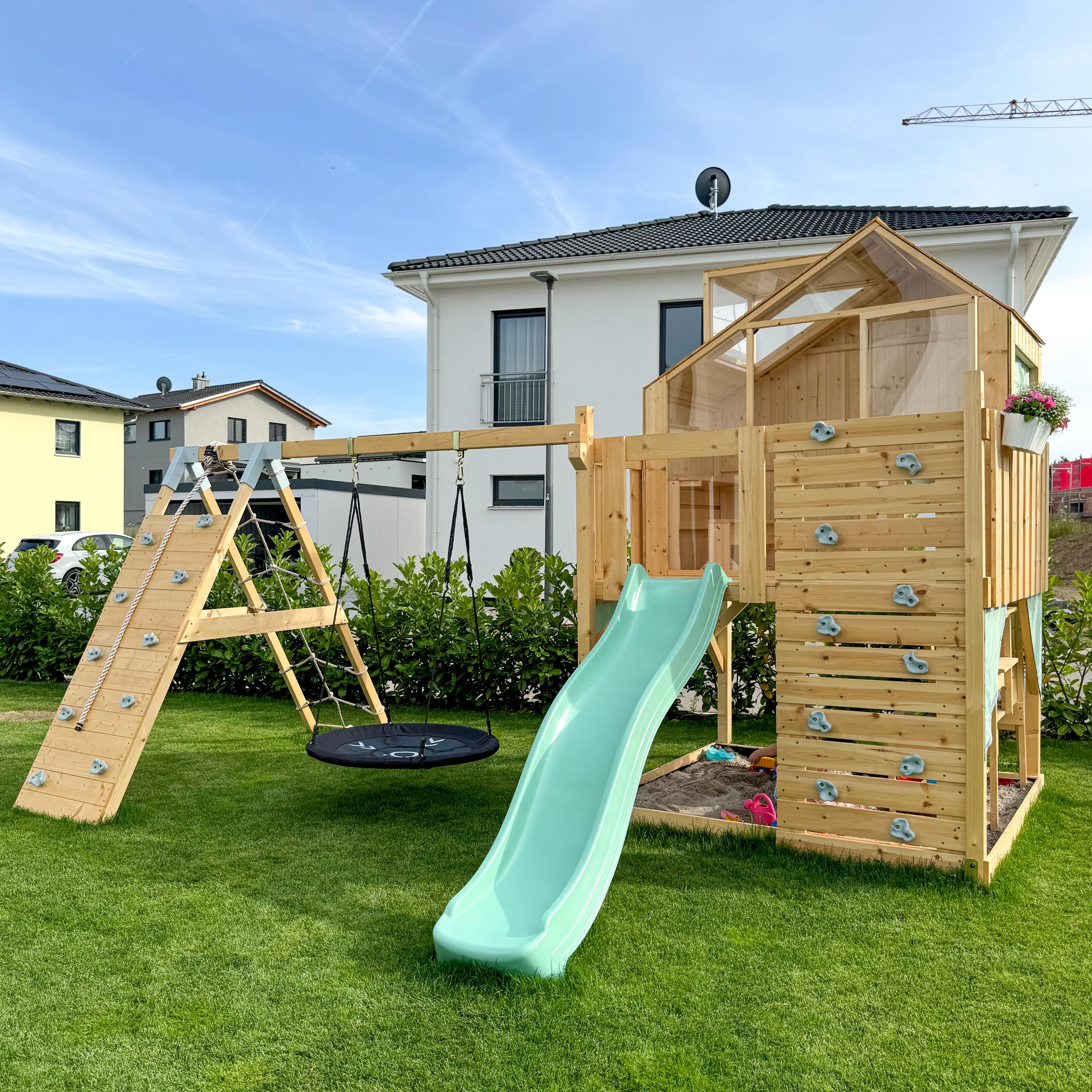 Wir versprechen dir eins: Wir haben für jede Grundstücksgröße die passenden Outdoor Spielgeräte. Wenn du nur einen kleinen Garten hast, kannst du dich für ein Spielhaus oder eine einzelne Rutsche entscheiden. Wenn du stattdessen ein vielfältiges Spielgerät suchst, das verschiedene Spielangebote vereint, sind unsere Klettertürme und Klettergerüste ideal. Sie laden mit Rutsche und Schaukeln zum ausgelassenen Toben ein. Teilweise halten unsere Klettertürme auch ein kleines Spielhaus bereit, in dem Kinder in verschiedene Rollenspiele eintauchen können. Alle Outdoor Spielgeräte aus unserem Haus bieten dir zudem die Möglichkeit, diese individuell nach den Wünschen deines Kindes zu gestalten.