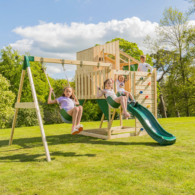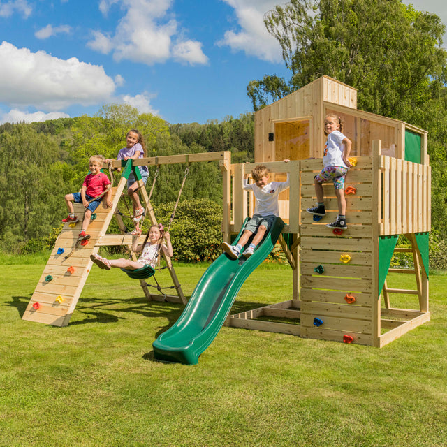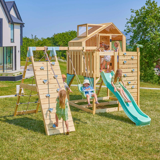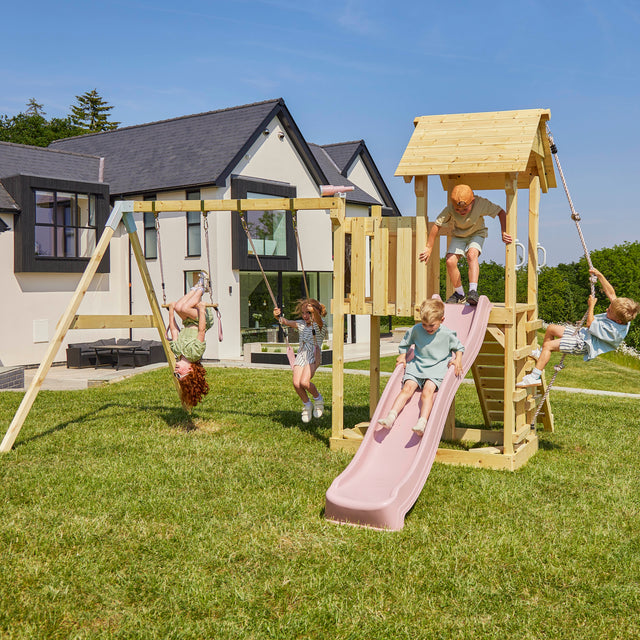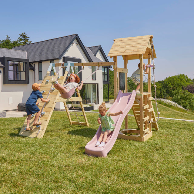 Wir versprechen dir eins: Wir haben für jede Grundstücksgröße die passenden Outdoor Spielgeräte. Wenn du nur einen kleinen Garten hast, kannst du dich für ein Spielhaus oder eine einzelne Rutsche entscheiden. Wenn du stattdessen ein vielfältiges Spielgerät suchst, das verschiedene Spielangebote vereint, sind unsere Klettertürme und Klettergerüste ideal. Sie laden mit Rutsche und Schaukeln zum ausgelassenen Toben ein. Teilweise halten unsere Klettertürme auch ein kleines Spielhaus bereit, in dem Kinder in verschiedene Rollenspiele eintauchen können. Alle Outdoor Spielgeräte aus unserem Haus bieten dir zudem die Möglichkeit, diese individuell nach den Wünschen deines Kindes zu gestalten.