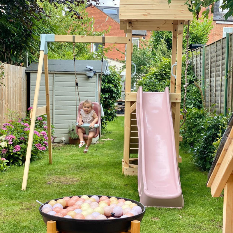 - Kinderschaukel mit Rutsche und Klettergerüst