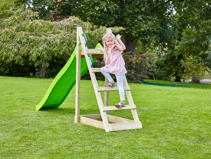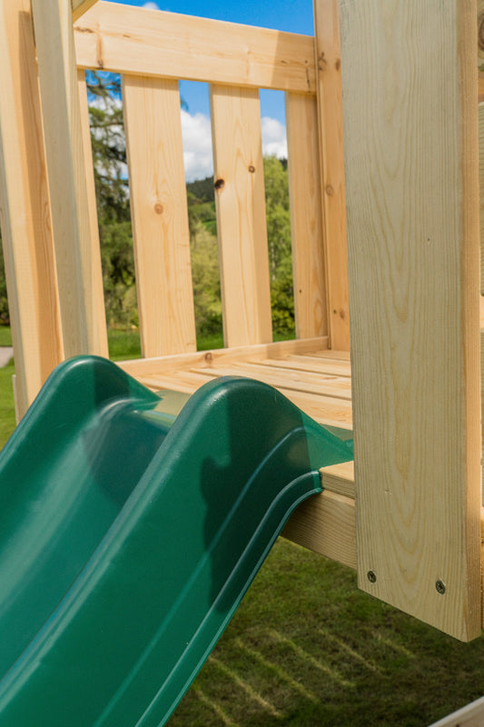 - Rutsche für Spielhaus: Die Rutsche wird von der oberen Etage von Spielhaus oder Spielturm aus betreten.