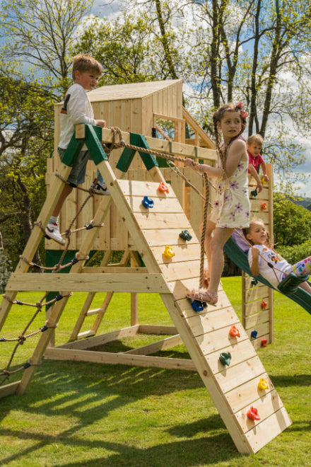 Verwandle deinen Garten in einen Abenteuerspielplatz und bestelle Schaukeln mit Kletterwand im Onlineshop von OutdoorToys!