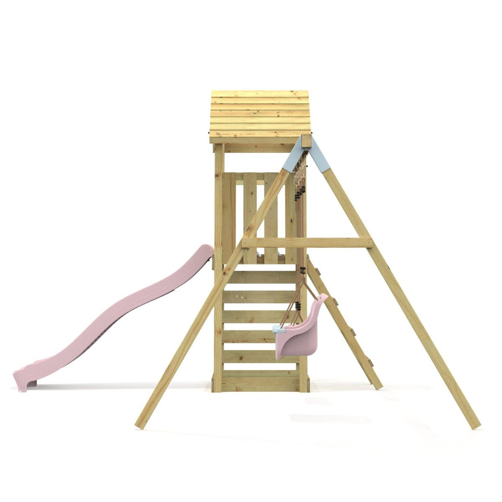 Mit seinem charmanten Design in sanften Pastellfarben ist dieses Klettergerüst nicht nur ein echter Hingucker, sondern auch der perfekte Ort für fantasievolles Spielen, Toben und Klettern.