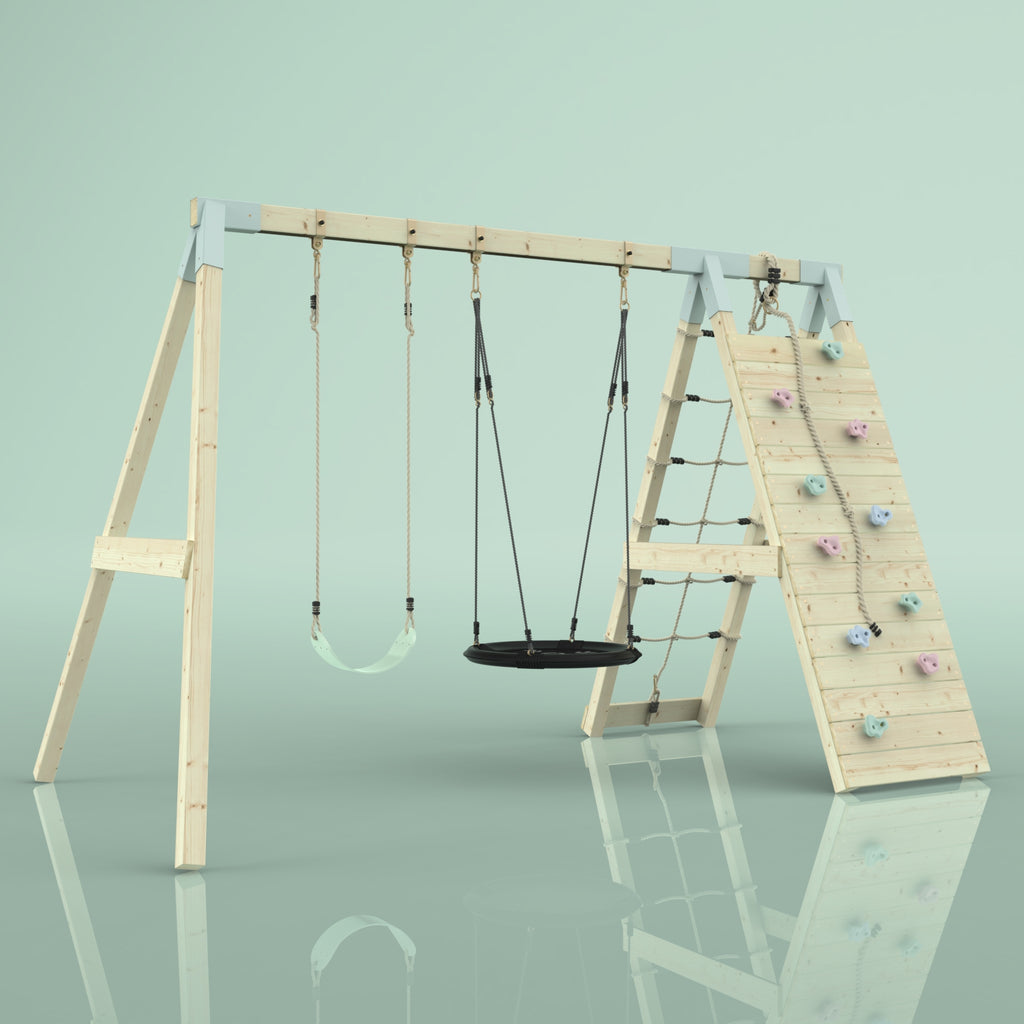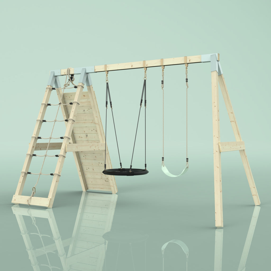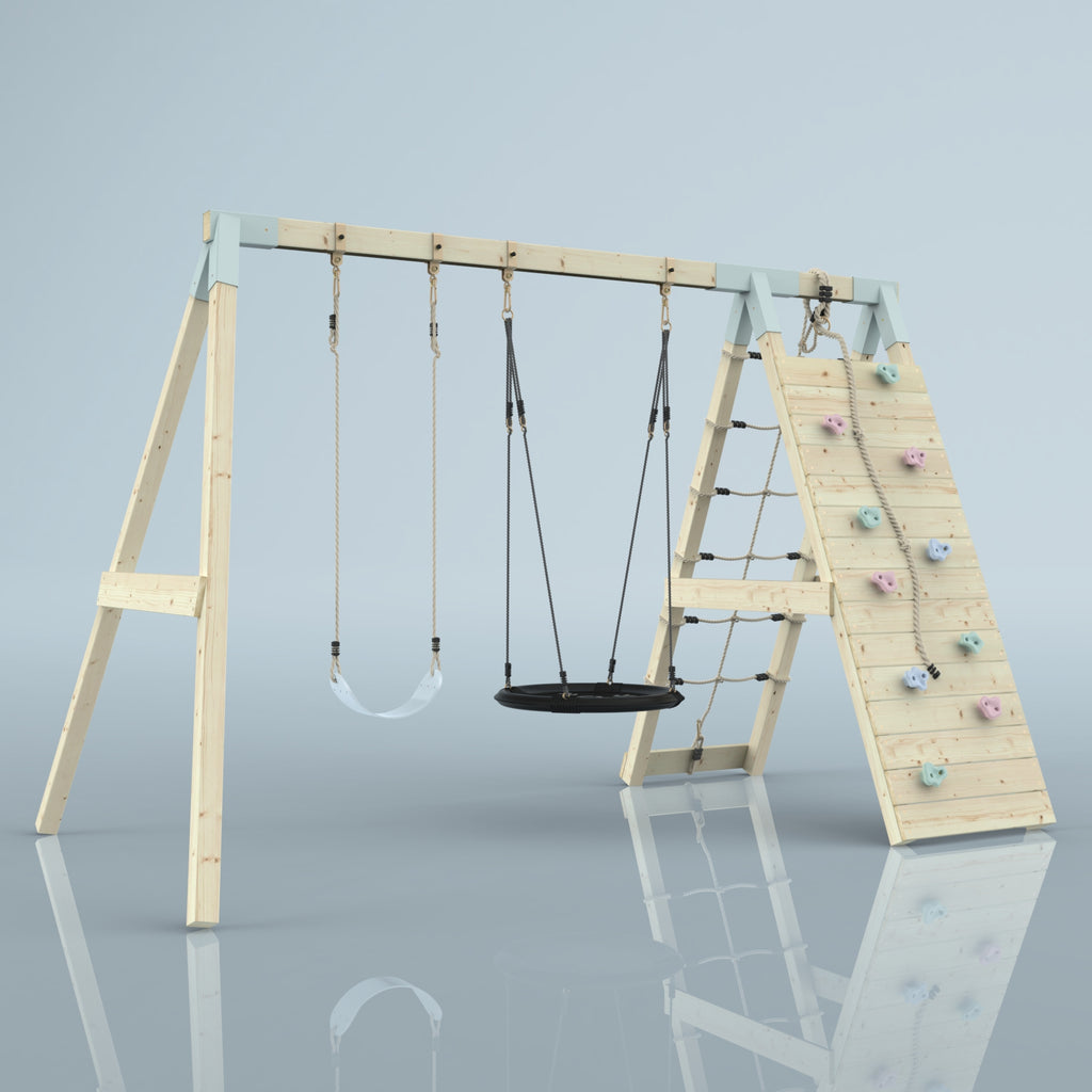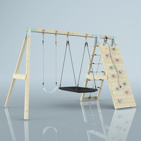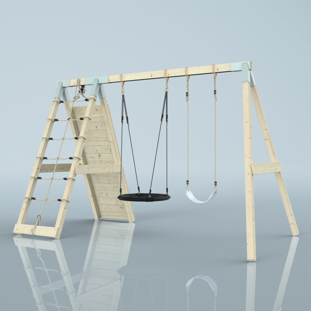 Solltest du dich für die Bootschaukel als Schaukelsitz entscheiden, kann es sein, dass die abgebildete Schaukel nicht der Schaukel entspricht, die du erhältst. Das liegt an einer Änderung in unserer Produktion. Das neue Modell der Schaukel ist ein bisschen eckiger, hat aber sonst die gleichen Abmessungen und Merkmale.