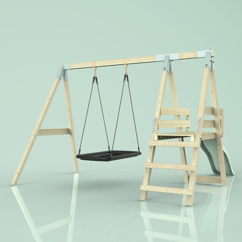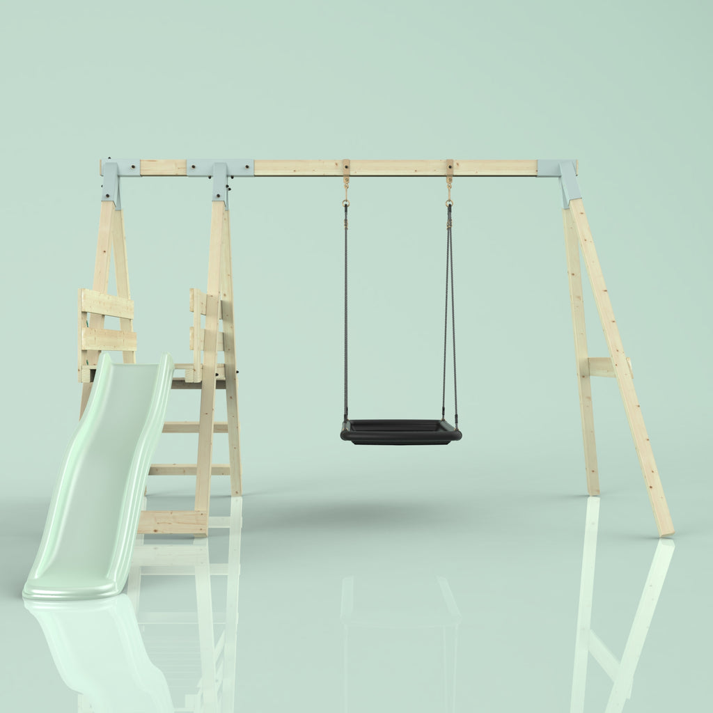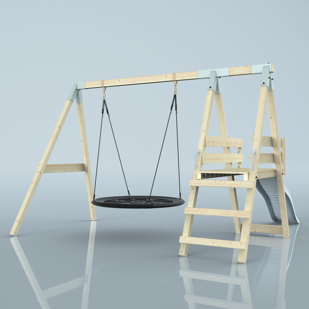 Solltest du dich für die Bootschaukel als Schaukelsitz entscheiden, kann es sein, dass die abgebildete Schaukel nicht der Schaukel entspricht, die du erhältst. Das liegt an einer Änderung in unserer Produktion. Das neue Modell der Schaukel ist ein bisschen eckiger, hat aber sonst die gleichen Abmessungen und Merkmale.