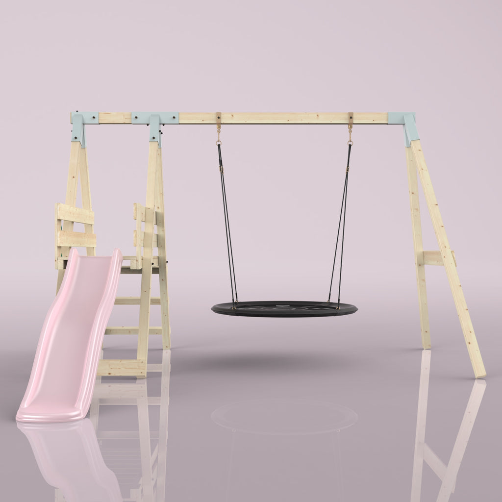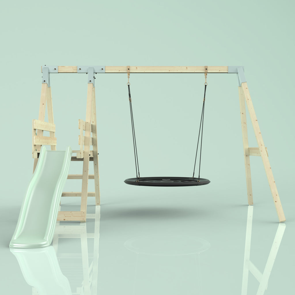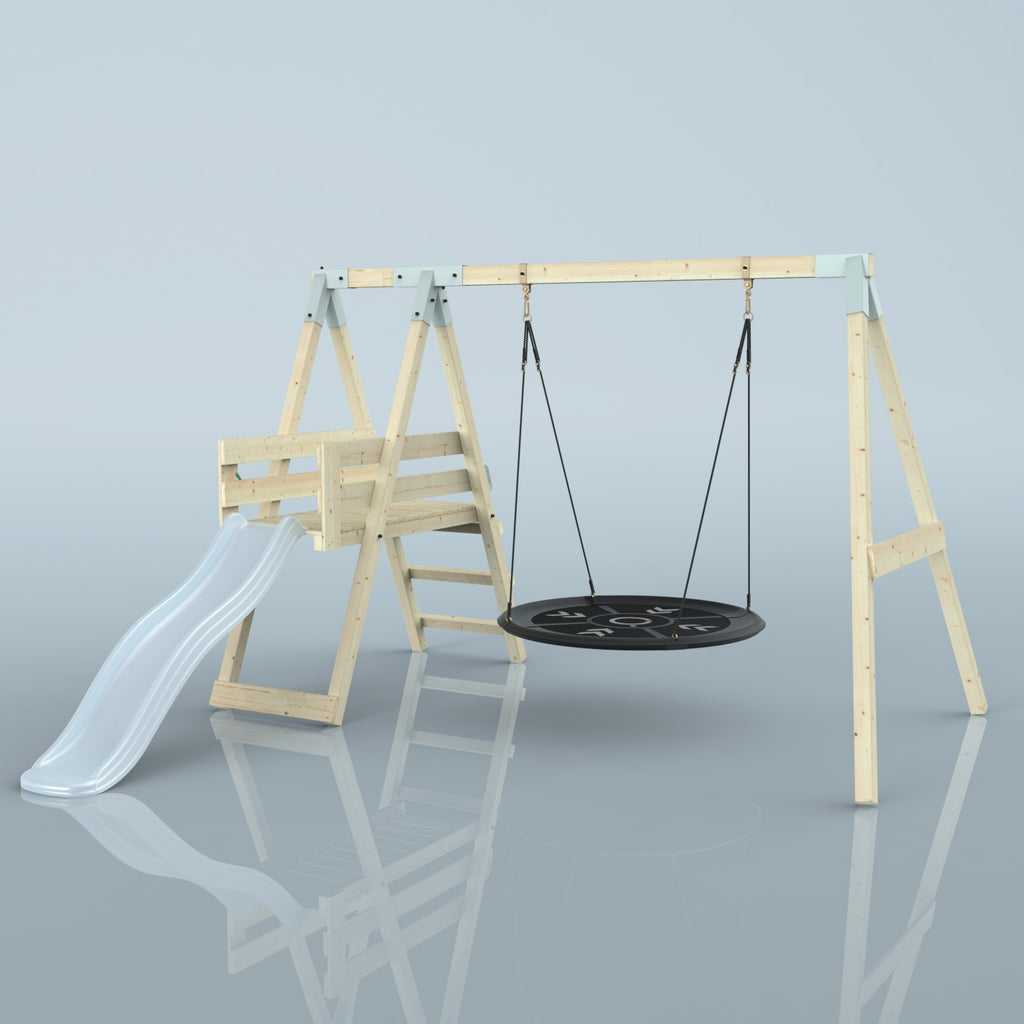 Solltest du dich für die Bootschaukel als Schaukelsitz entscheiden, kann es sein, dass die abgebildete Schaukel nicht der Schaukel entspricht, die du erhältst. Das liegt an einer Änderung in unserer Produktion. Das neue Modell der Schaukel ist ein bisschen eckiger, hat aber sonst die gleichen Abmessungen und Merkmale.