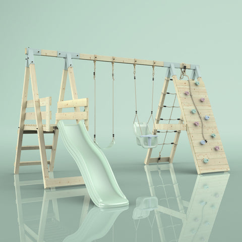 Unsere PolarPlay Schaukel Schmetterling hat alles, was sich Kinder wünschen können und lässt Kinderherzen höherschlagen. Neben der Schaukel sorgt eine Rutsche für großen Spielspaß im eigenen Garten. Schon die ganz Kleinen können dank der zugehörigen Babyschaukel den heimischen Garten aus der Vogelperspektive betrachten, während die größeren Geschwisterchen voller Abenteuerlust nicht genug von der Kletterwand bekommen.